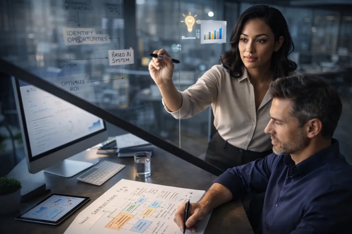 Within 24 hours of our session you receive a written AI Blueprint - a phased implementation roadmap that outlines your top AI opportunities, what to build first, and what it will change in your business.